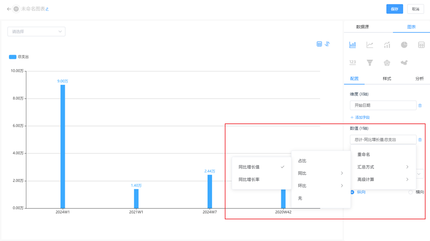 统计图 统计图增加同比、环比、占比计算,帮助用户更好地评估经济和市场表现,有助于企业更好地了解自身业务发展方向和趋势。