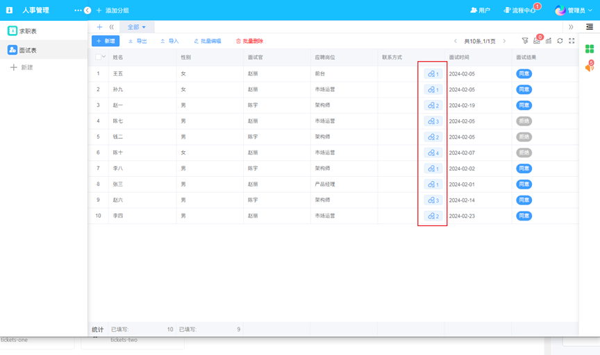当关联多条数据时,对列表中关联的数据进行汇总,方便用户了解关联了几条数据。