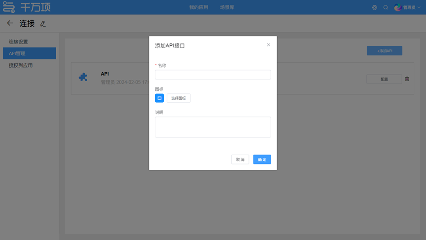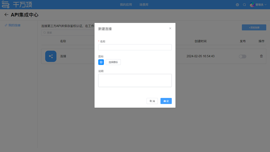 API集成中心 本次上线的API集成中心,用于提供系统集成的相关能力,能够快速、可靠地进行与第三方系统的数据传输和信息共享。除了用户可自定义创建链接调用外部接口外,后续我们将与更多产品供应商达成合作,为用户提供更多开箱即用的第三方API。 步骤一:连接与认证。添加连接,自定义连接名称和图标。然后,根据所需API服务的鉴权要求,选择对应的选择鉴权方式。