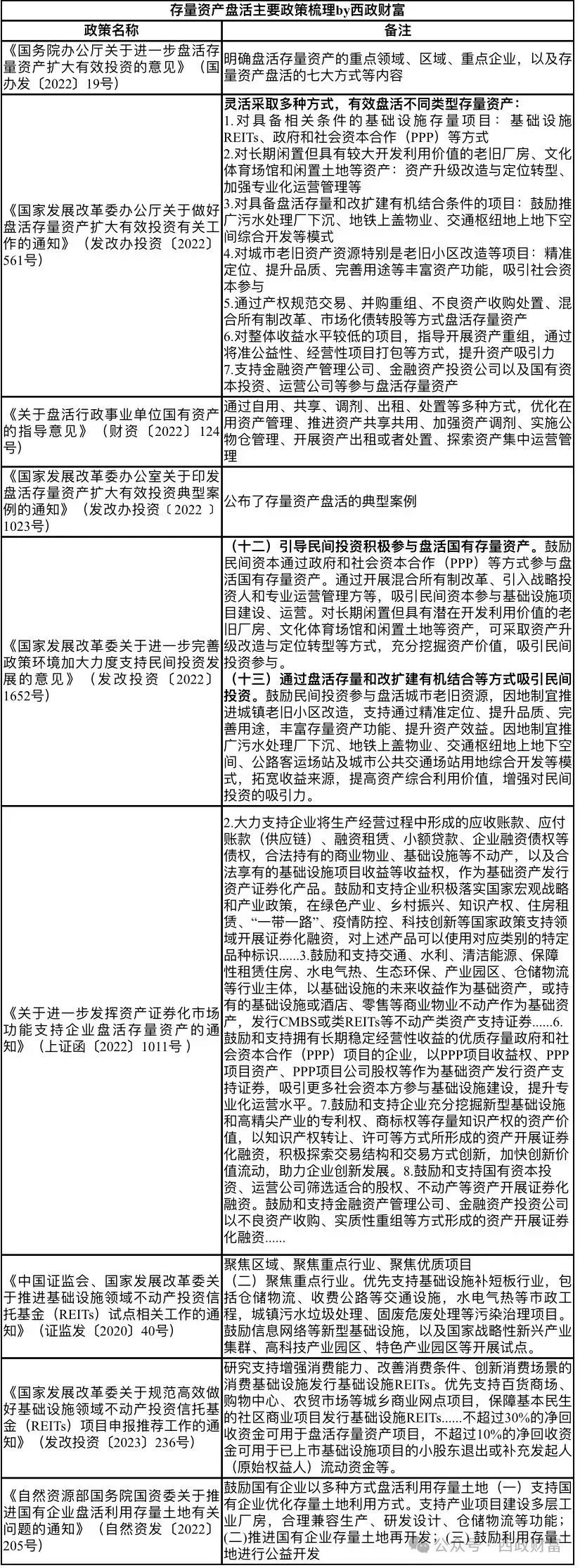 国办发〔2022〕19号文作为存量资产盘活的纲领性政策指出重点盘活存量规模较大,当前收益较好或增长潜力较大的基础设施项目资产;统筹盘活存量和改扩建有机结合的项目资产;有序盘活长期闲置但具有较大开发利用价值的项目资产。
