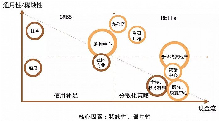 其中办公楼、购物中心、社区商业、科研用楼、仓储物流、数据中心等为通用性相对较好的物业,现金流也比较适中的物业类型是资产证券化发行的主流产品。 五、基础资产重组的方式有四种